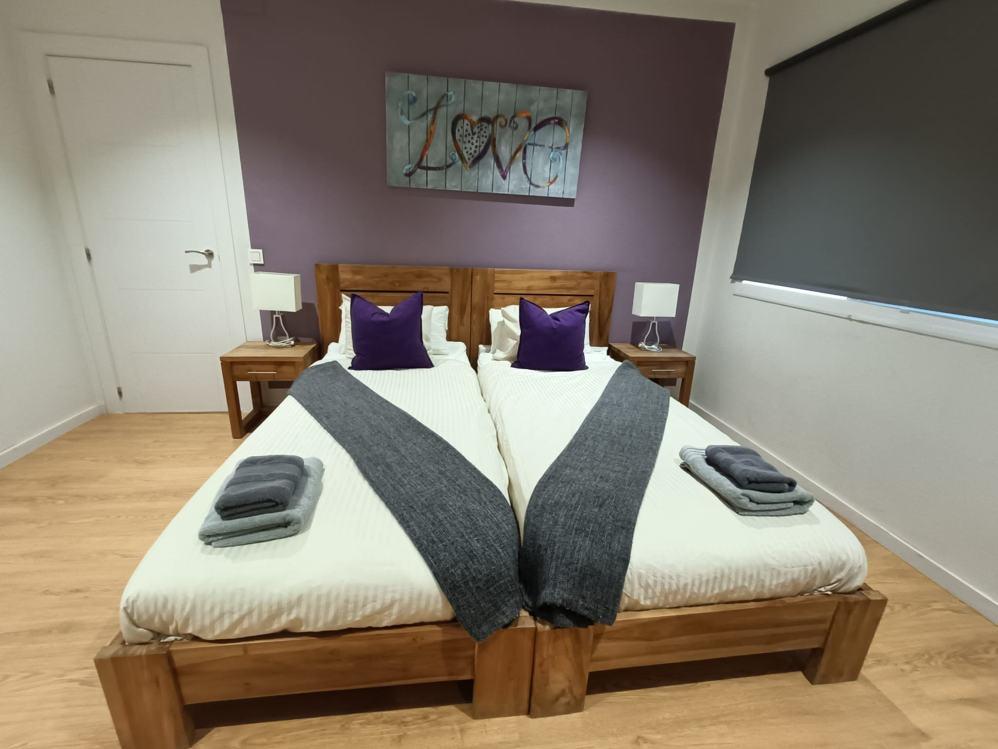 - 3º dormitorio, con una cama de 160x200cm y dos camas individuales de 90x200cm.
