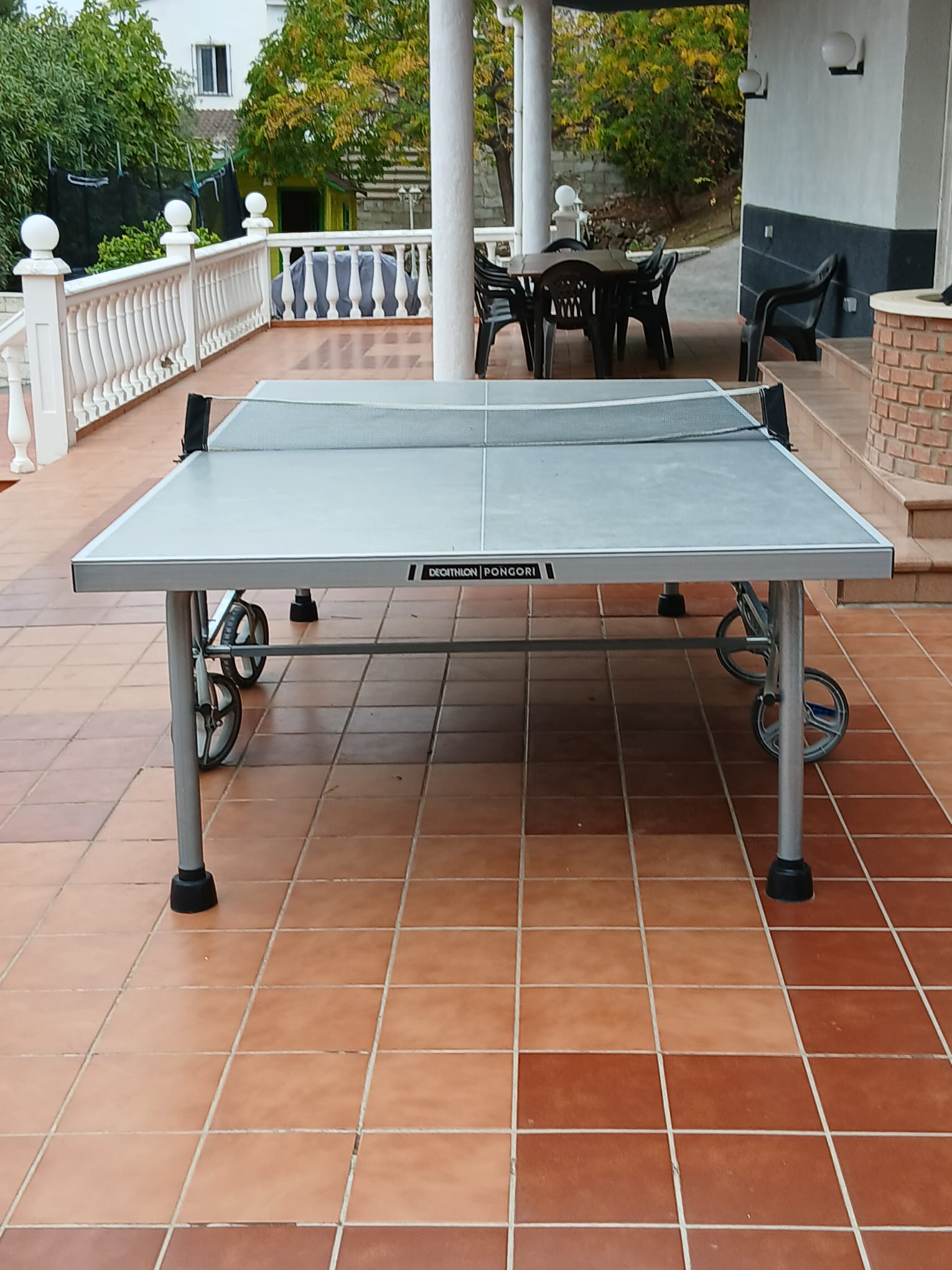 Ahí se puede disfrutar de una deliciosa cena al aire libre o una barbacoa con familia y amigos. Esta preciosa villa dispone además de zona de ocio, en la cual encontrarás una mesa de ping pong y juego de dardos. Este amplio alojamiento es ideal para familias numerosas, amigos, deportistas...