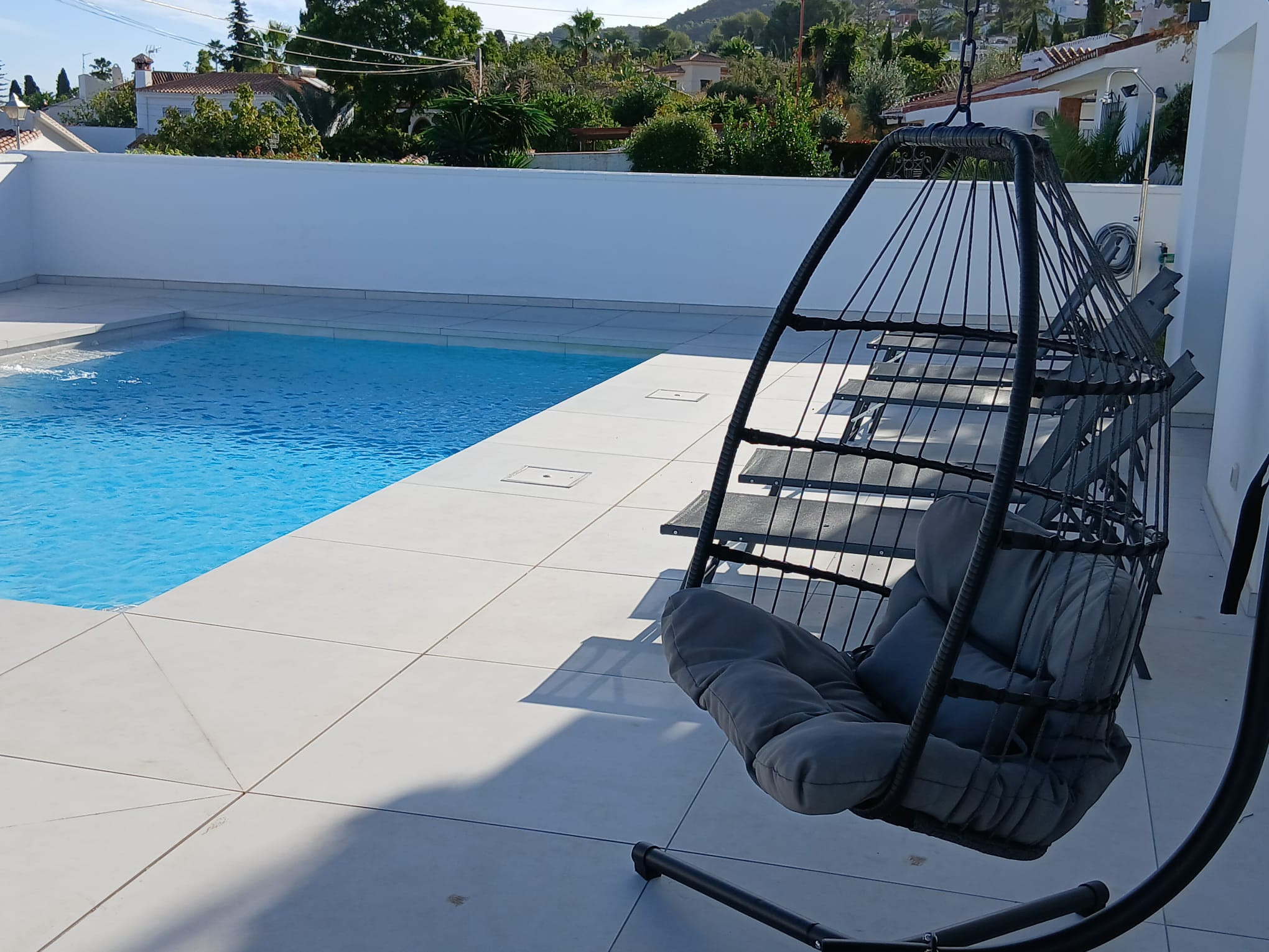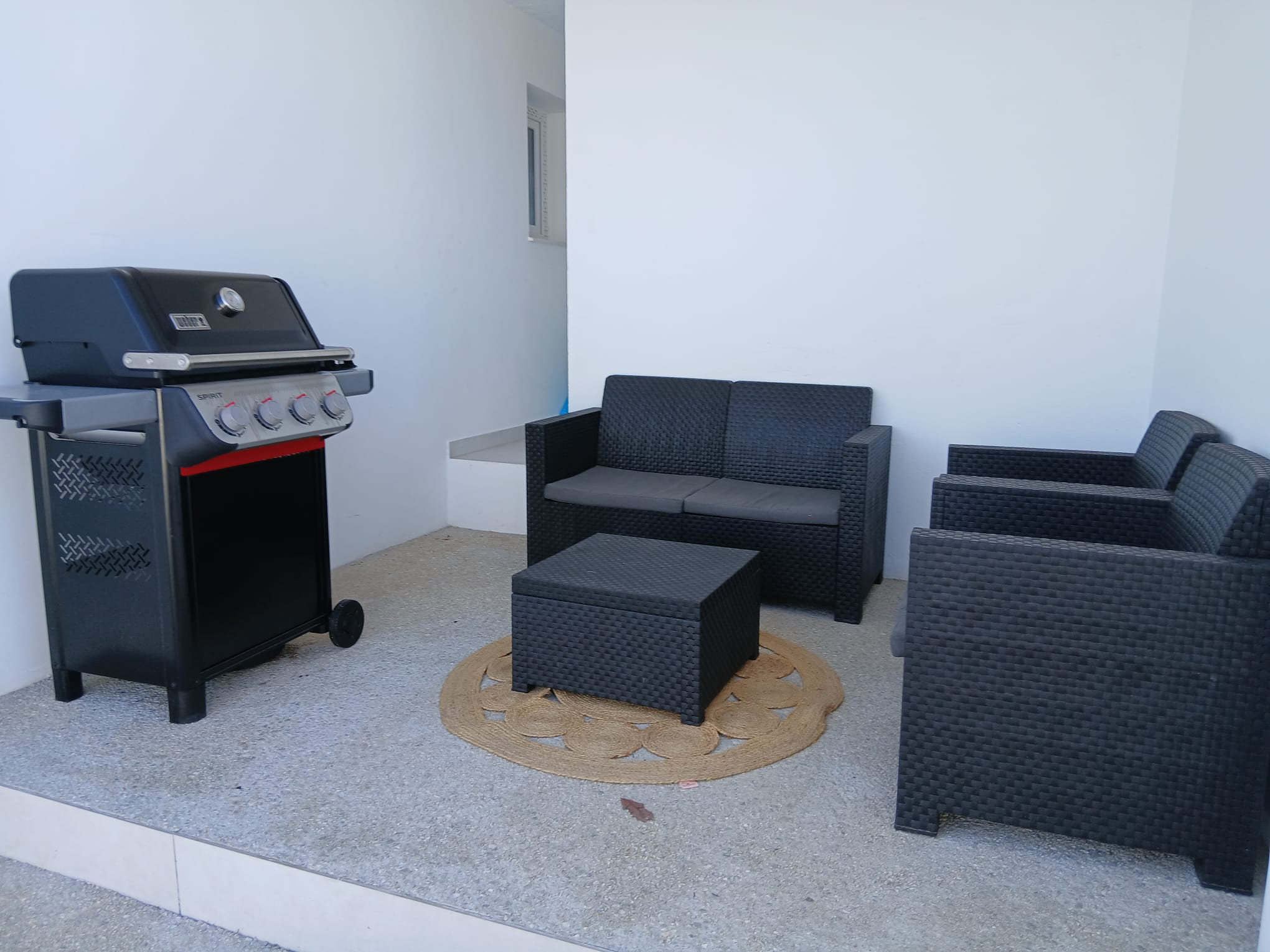 En el exterior, aunque aún no aparecen en las fotos, la villa cuenta con un set de muebles de jardín para cuatro personas, con mesa incluida, ideal para disfrutar de comidas al aire libre. También se incluye una barbacoa Weber, totalmente equipada con utensilios, perfecta para aprovechar el clima mediterráneo.