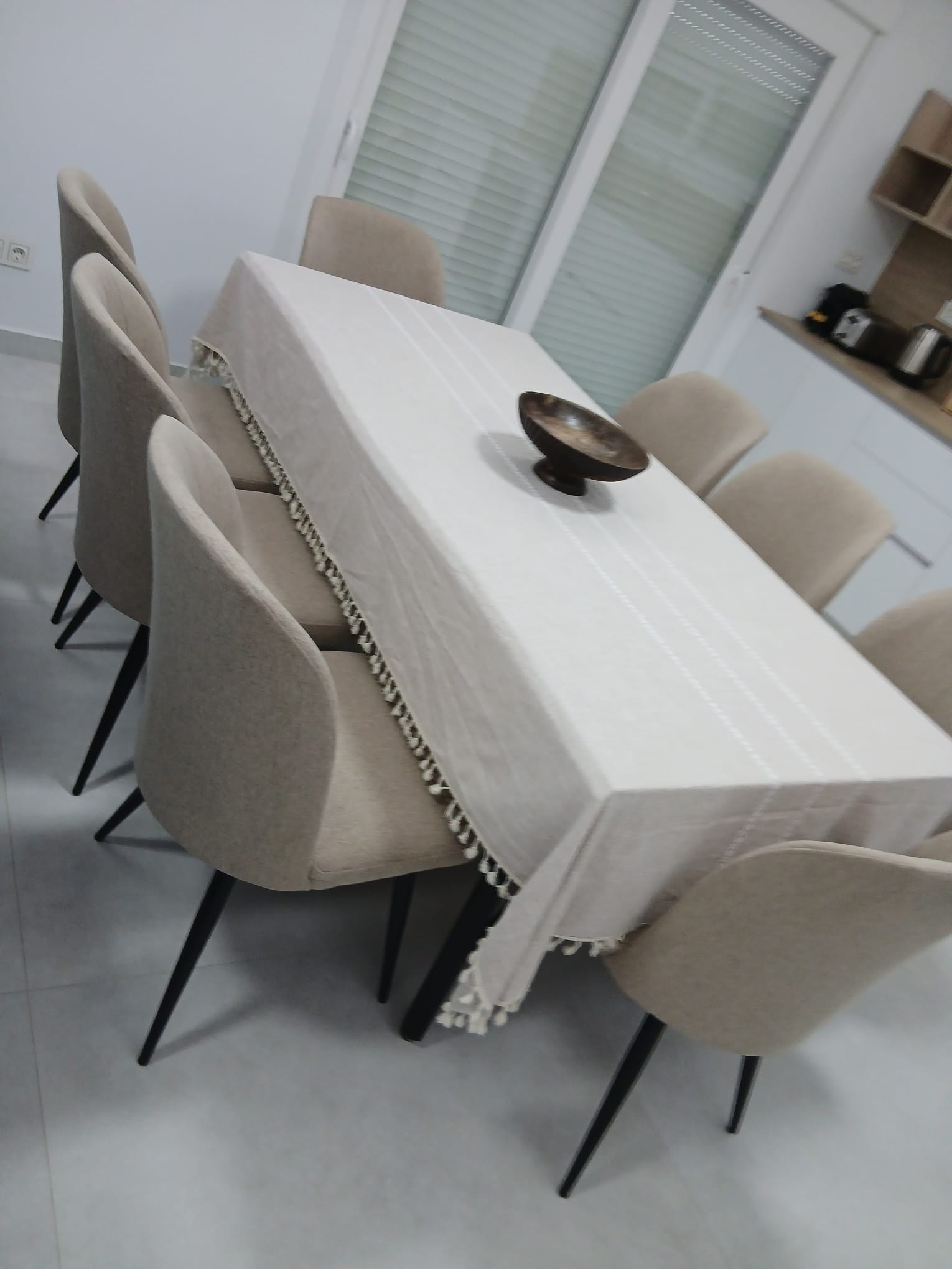 El amplio salón también es independiente y cuenta con un cómodo sofá tipo chaise-longue, televisión con canales internacionales y Netflix, una chimenea decorativa que agrega un toque acogedor al espacio (aunque no está permitido su uso), una mesa de comedor con capacidad para 8 personas, una selección de libros y juegos de mesa para entretenimiento, y una salida hacia la hermosa terraza.