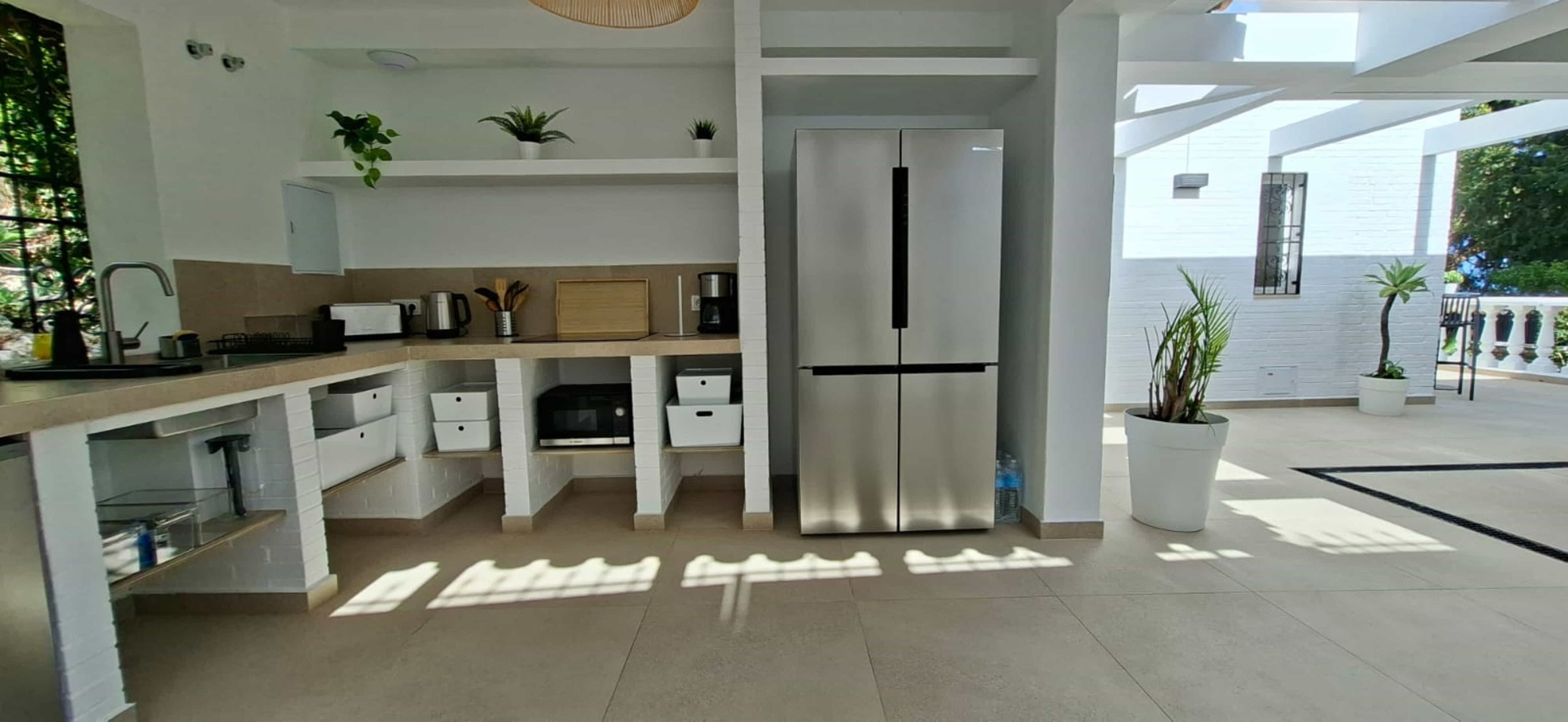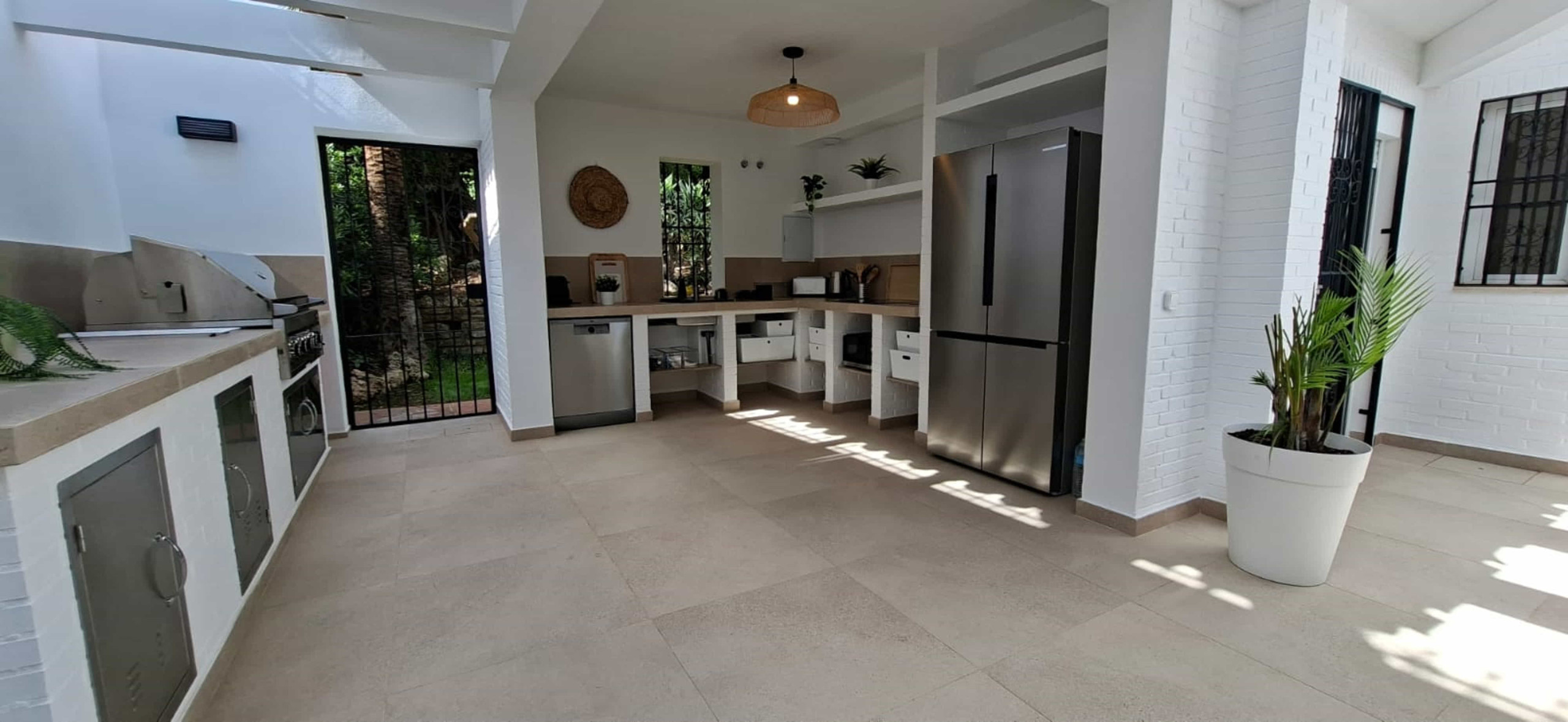Cocina exterior y gran terraza cubierta