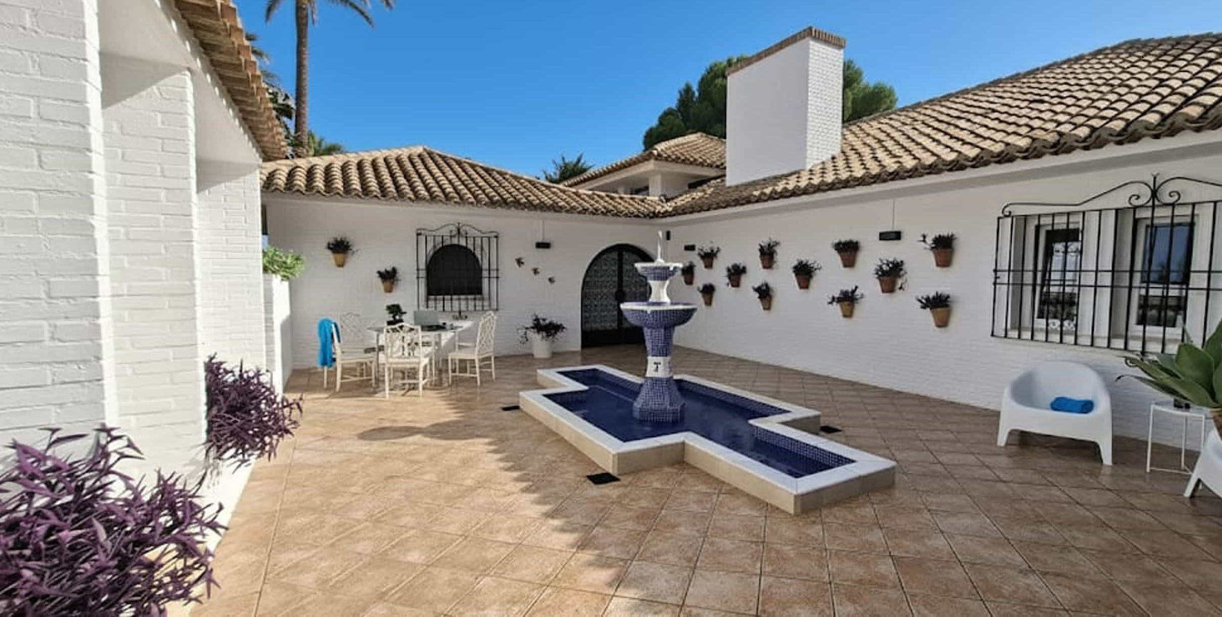 Private Mediterranean garden & Andalusian patio with fountain