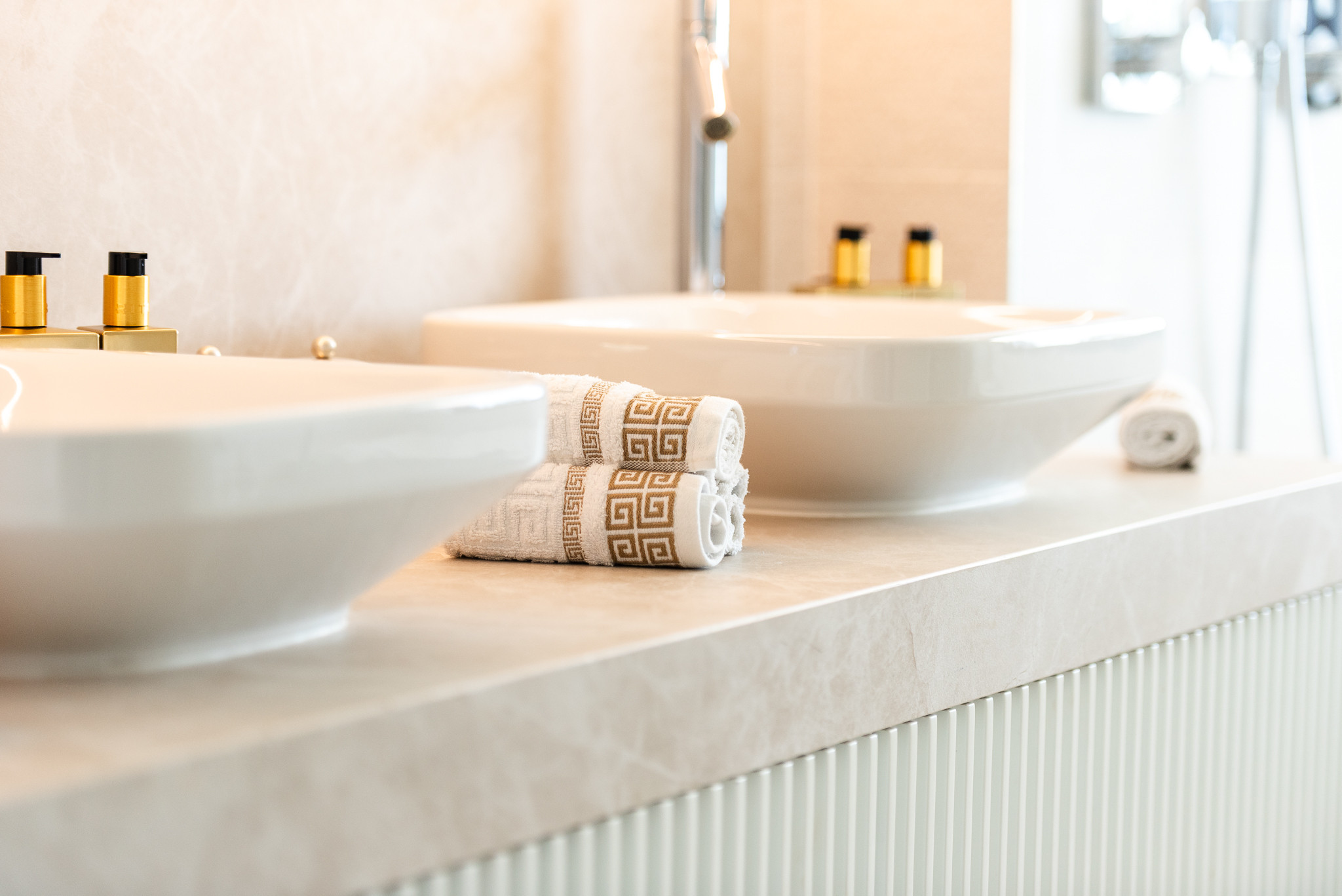 - Ensuite bathroom with double sink, shower, bath tub and toilet
