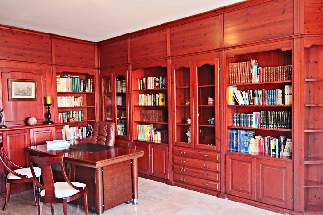 Au rez-de-chaussée, nous trouvons une sixième chambre (avec un lit de 140 x 200), avec air conditionné et chauffage, un coin bureau et bibliothèque et de grandes fenêtres avec vue sur les montagnes. Nous trouvons également une septième chambre (avec quatre lits simples de 90 x 200), avec air conditionné et chauffage, un espace pour enfants, des jeux pour enfants et des jeux de société.