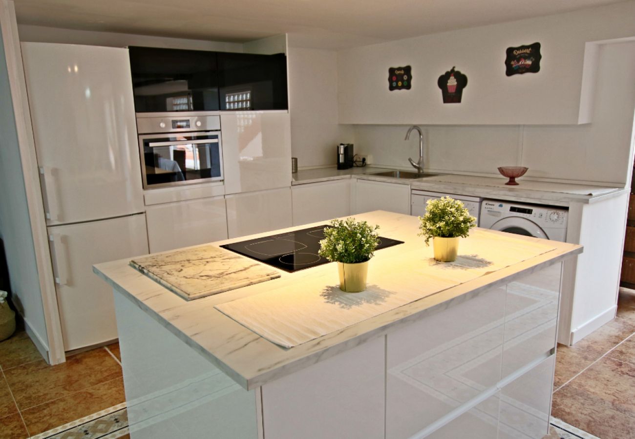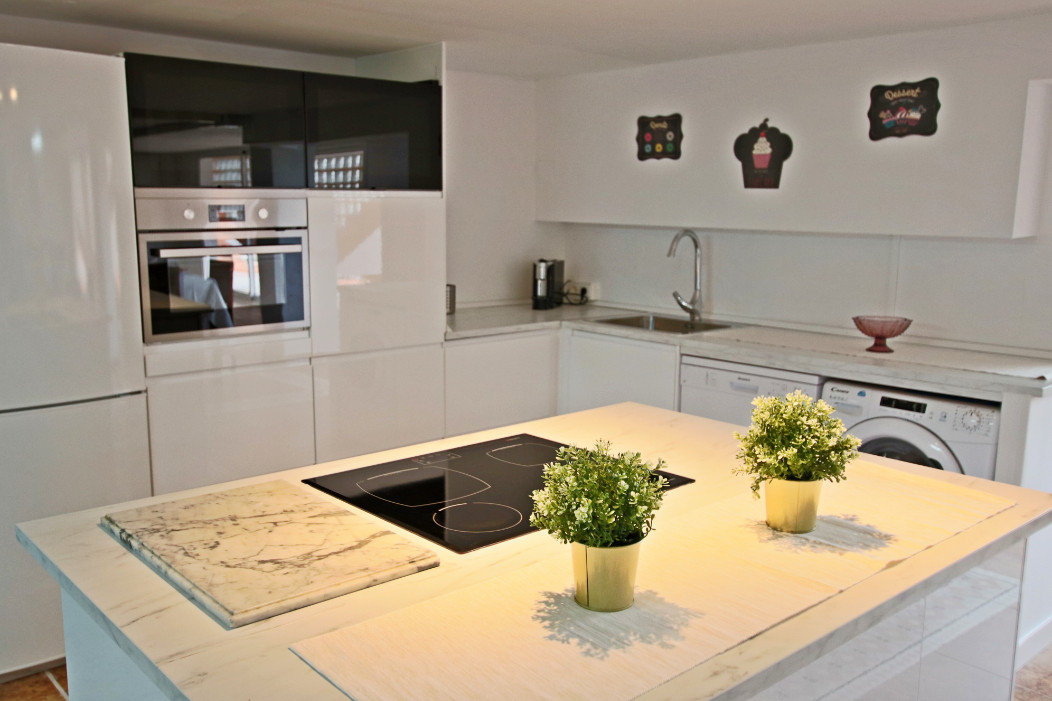 Bien que nous sachions que pendant vos vacances vous aimez manger ou dîner à l'extérieur (vous avez de nombreux restaurants à côté de votre maison), vous pouvez avoir envie de cuisiner un jour, il est donc nécessaire d'avoir une cuisine équipée de tout ce dont vous avez besoin. Dans cette villa, il y en a deux ! L'une se trouve au rez-de-chaussée.