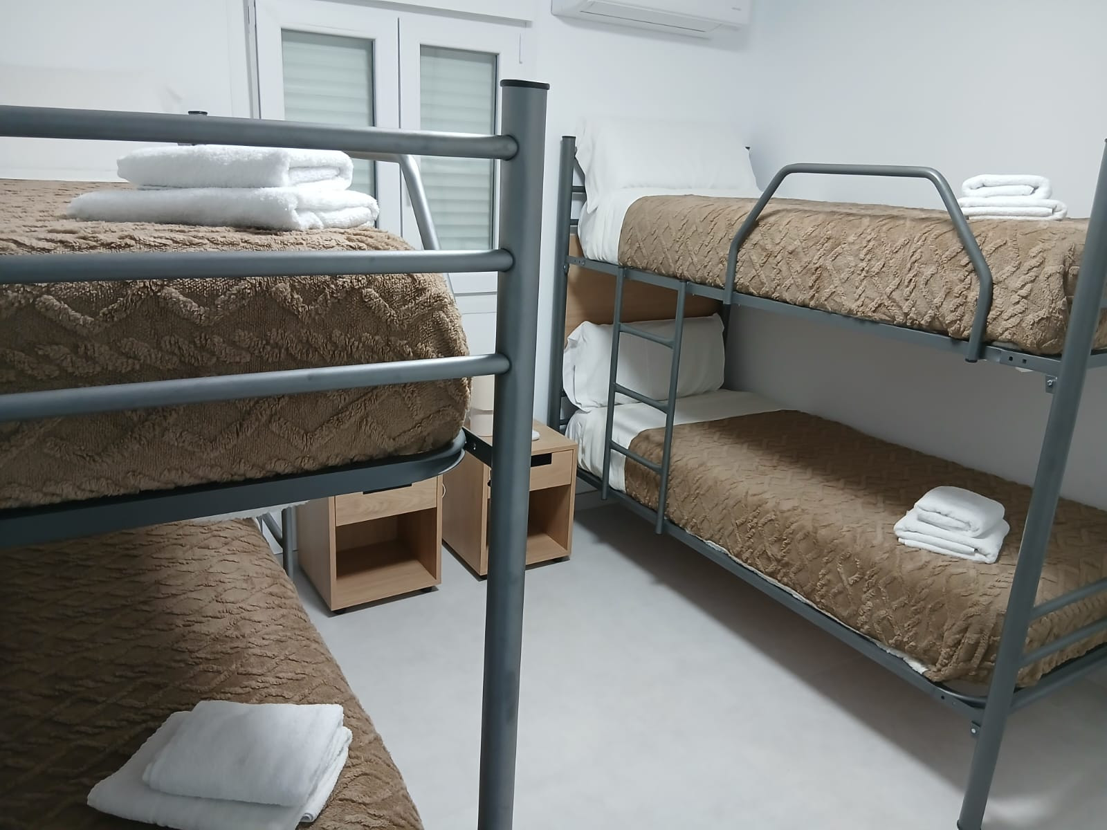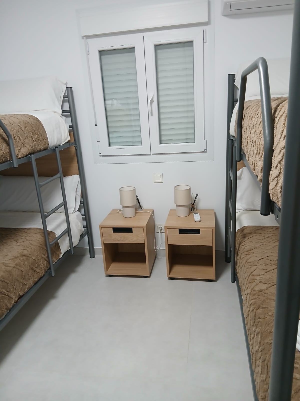 -Chambre C : comprend deux lits individuels de 80x200 cm, un lit individuel de 90x120 cm et un autre lit individuel de 105x200 cm. Elle dispose de la climatisation, d'un placard intégré et de grandes fenêtres qui offrent beaucoup de luminosité. Elle a un accès à une salle de bain avec baignoire, partagée avec la chambre D.