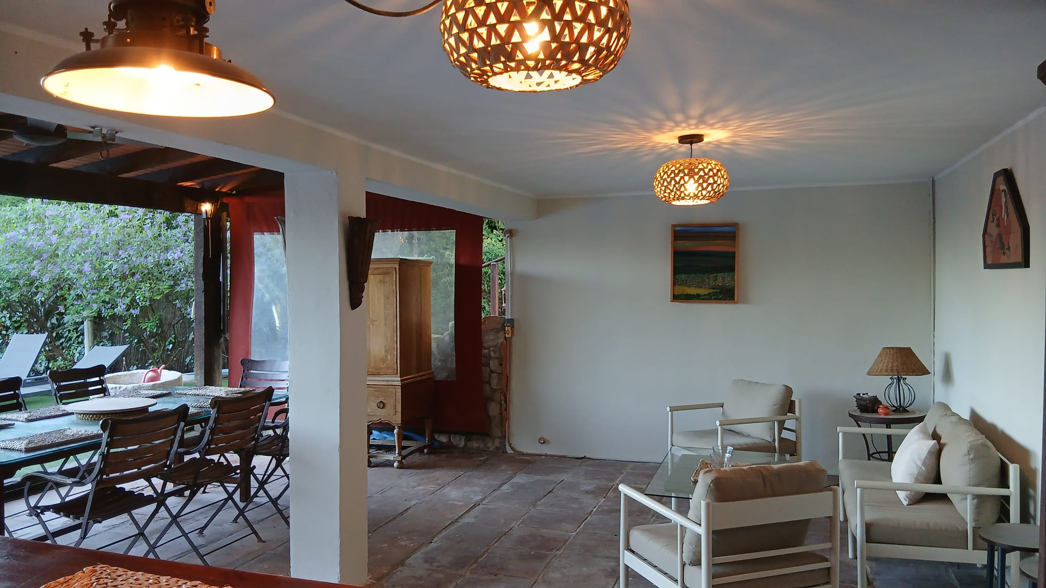 Le salon à double hauteur dispose de deux canapés confortables, d'une télévision et d'une zone de salle à manger spacieuse, parfaite pour les réunions familiales ou entre amis. De plus, la maison dispose de 6 chambres, comprenant 3 chambres doubles et 3 chambres avec deux lits individuels chacune et un lit escamotable vertical dans le salon, offrant un espace calme pour tous les invités. Pour plus de commodité, il y a 4 salles de bains au total, trois avec douche et une avec baignoire.