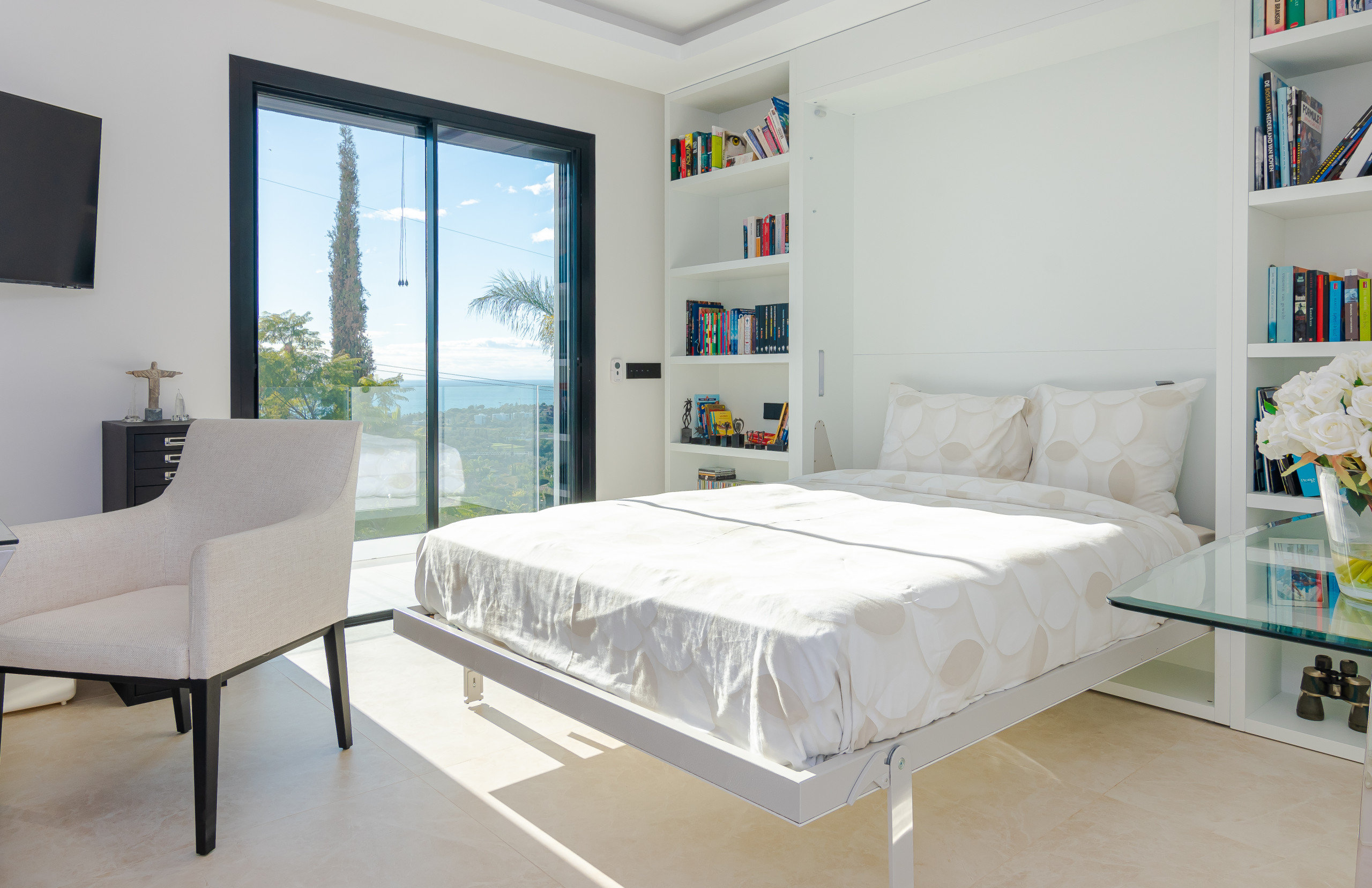 La spacieuse chambre principale a un lit double 1,80 * 2,00 avec walk demi dans les placards. De cette chambre vous avez accès direct à la terrasse rez de chaussée avec salle à manger pour 6 personnes d'un espace jardin avec le secteur privé (* chauffée) piscine, un jacuzzi et des lits soleil pour une détente absolue.