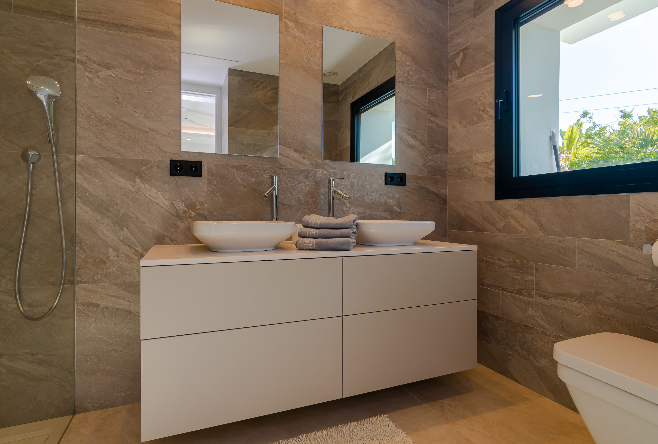Au rez de chaussée il ya 3 chambres à coucher avec toutes les salles de bains et un WC invité.